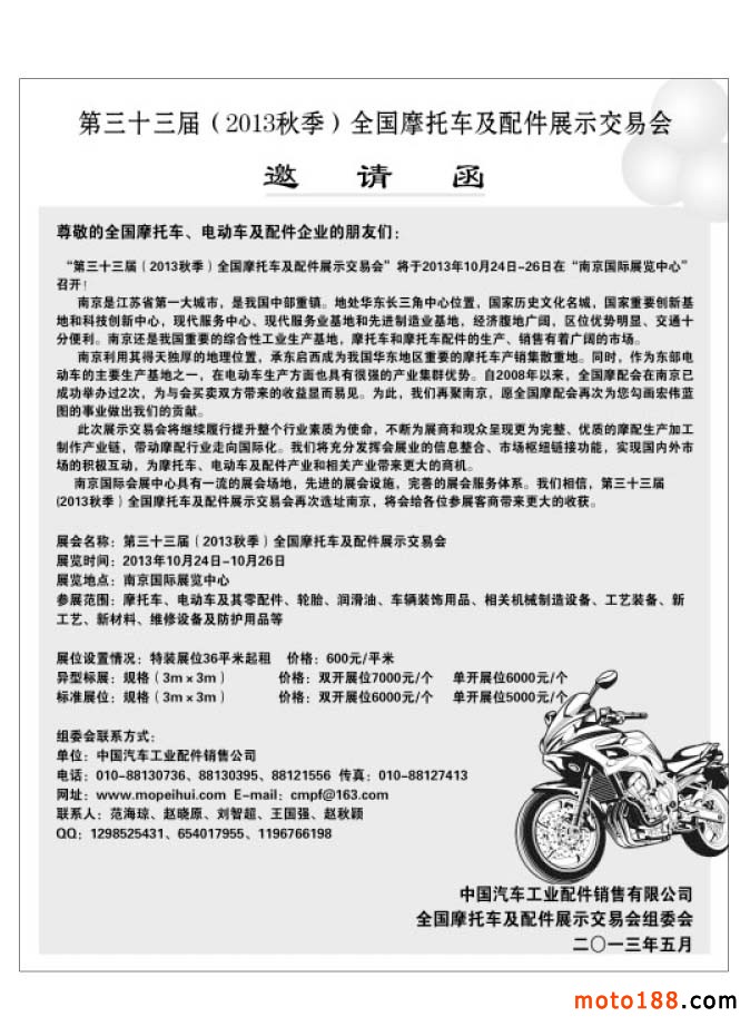 第三十三届(2013秋季)全国摩托车及配件展示交易会邀请函