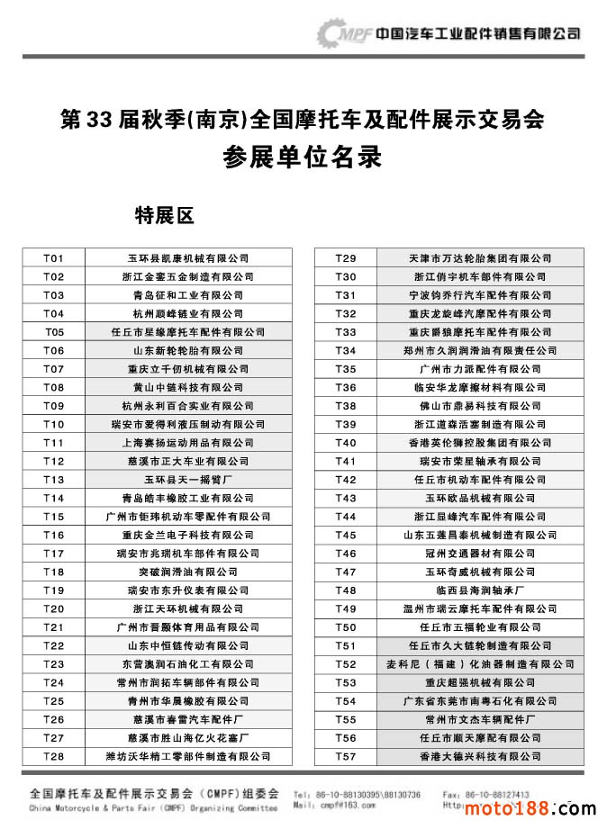 第33届秋季(南京)全国摩托车及配件展示交易会参展单位名录