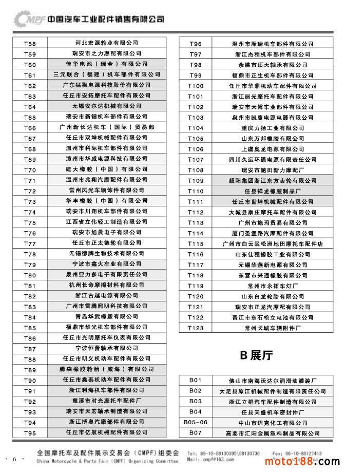 第33届秋季(南京)全国摩托车及配件展示交易会参展单位名录