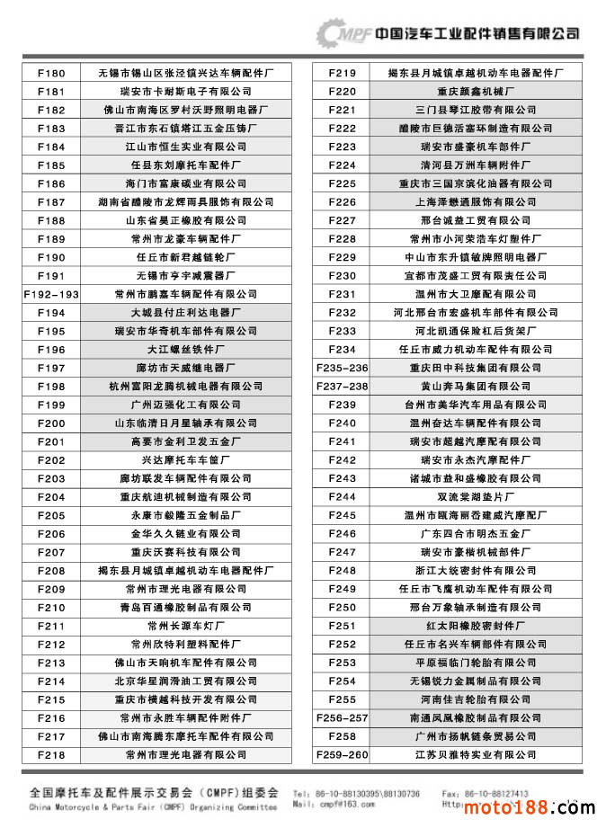 第33届秋季(南京)全国摩托车及配件展示交易会参展单位名录