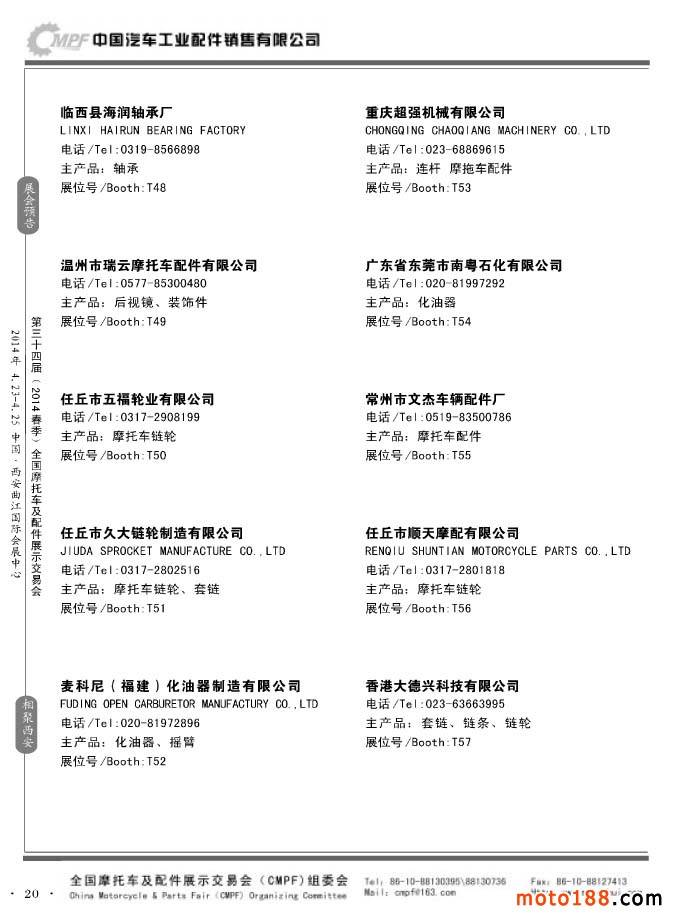 第33届秋季(南京)全国摩托车及配件展示交易会参展企业名录