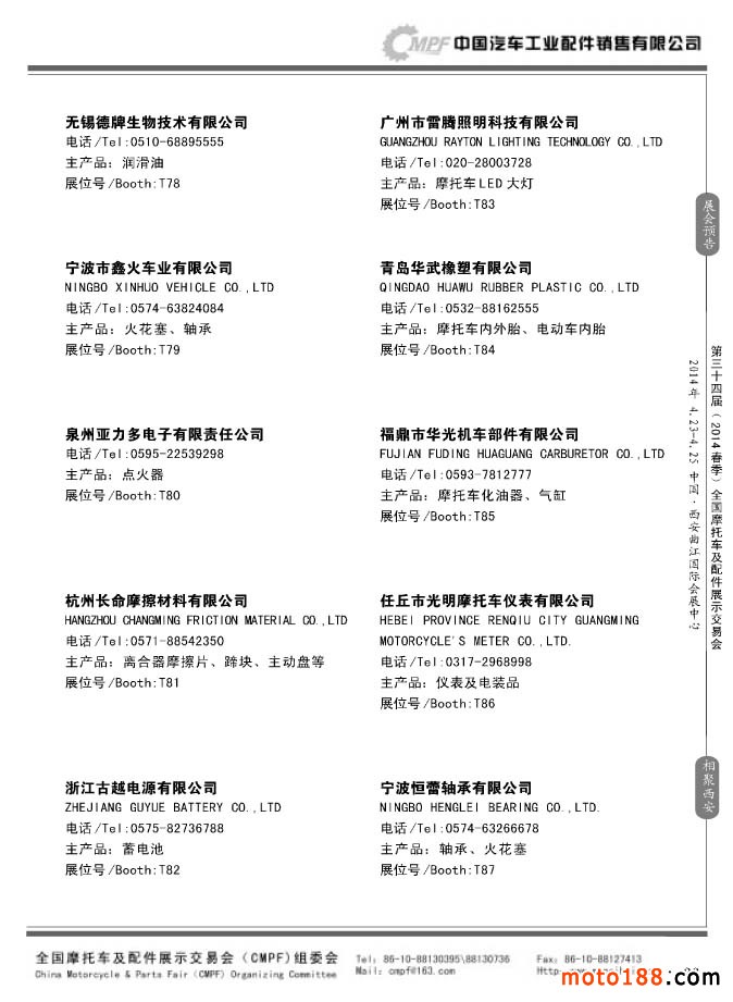 第33届秋季(南京)全国摩托车及配件展示交易会参展企业名录