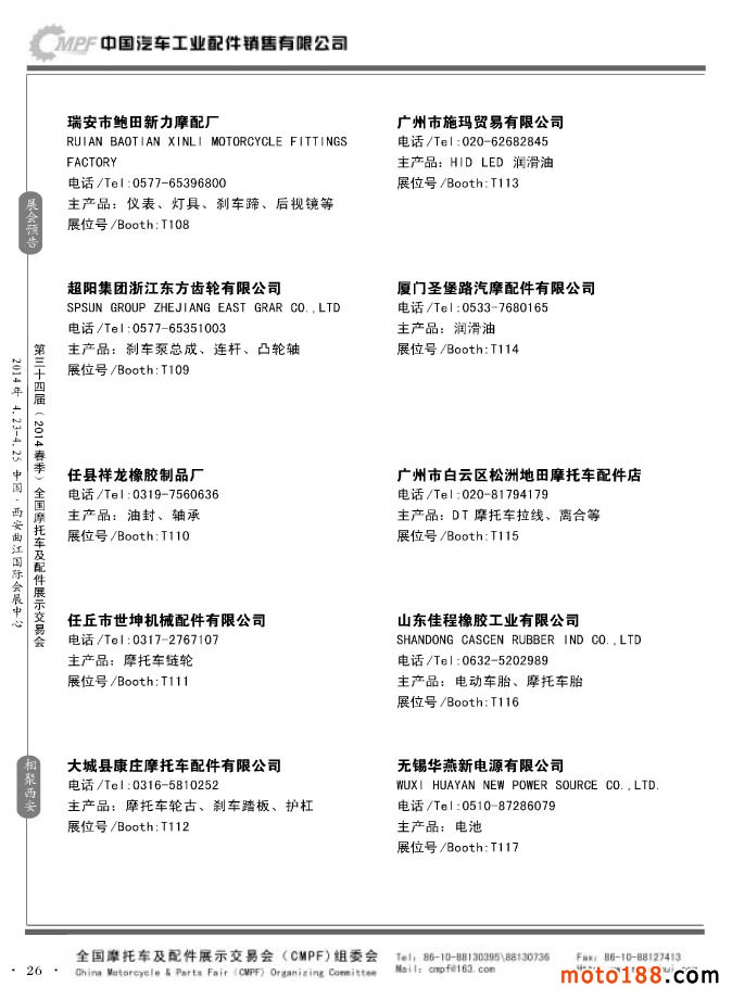 第33届秋季(南京)全国摩托车及配件展示交易会参展企业名录