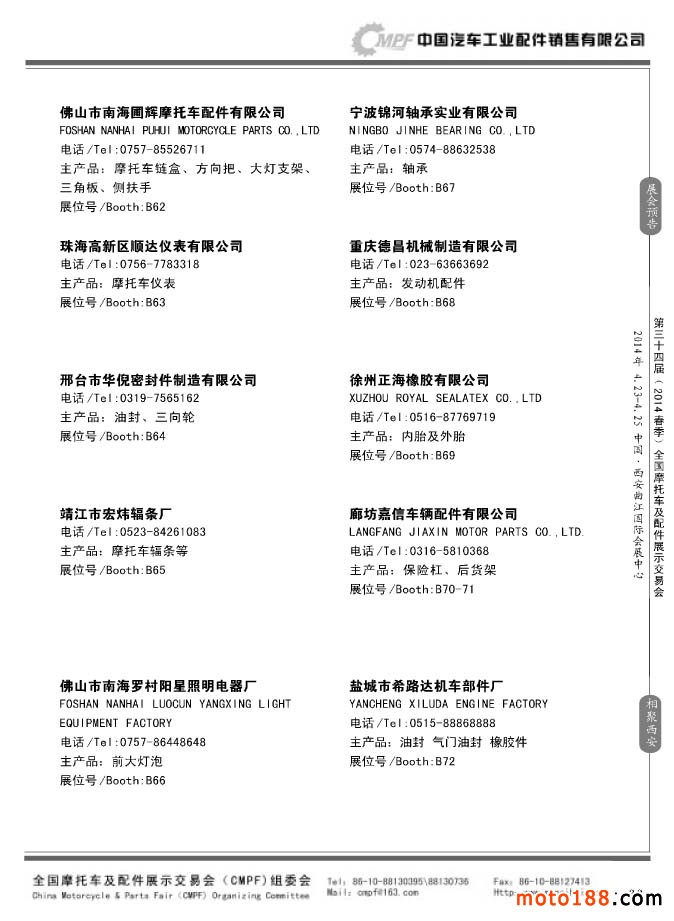 第33届秋季(南京)全国摩托车及配件展示交易会参展企业名录