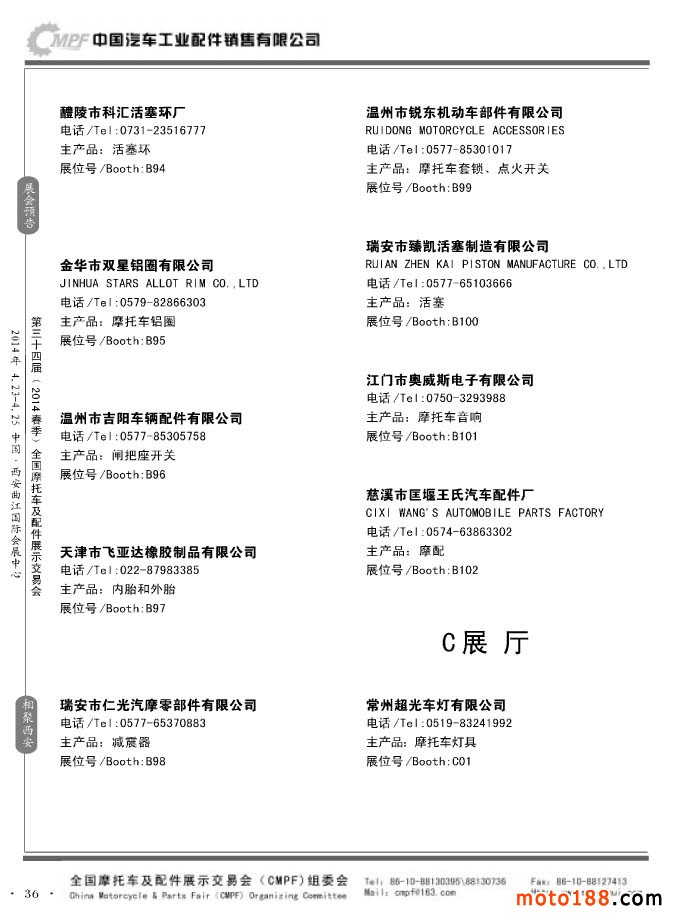 第33届秋季(南京)全国摩托车及配件展示交易会参展企业名录