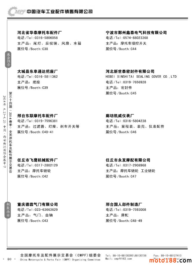 第33届秋季(南京)全国摩托车及配件展示交易会参展企业名录