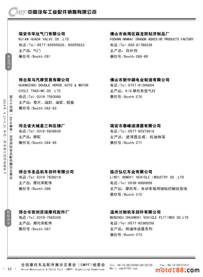 第33届秋季(南京)全国摩托车及配件展示交易会参展企业名录