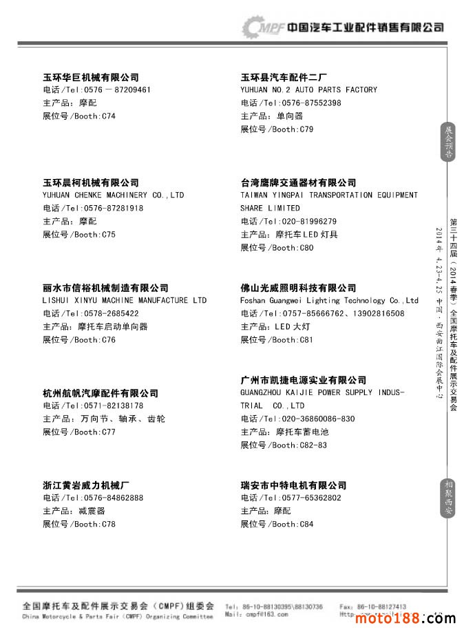 第33届秋季(南京)全国摩托车及配件展示交易会参展企业名录