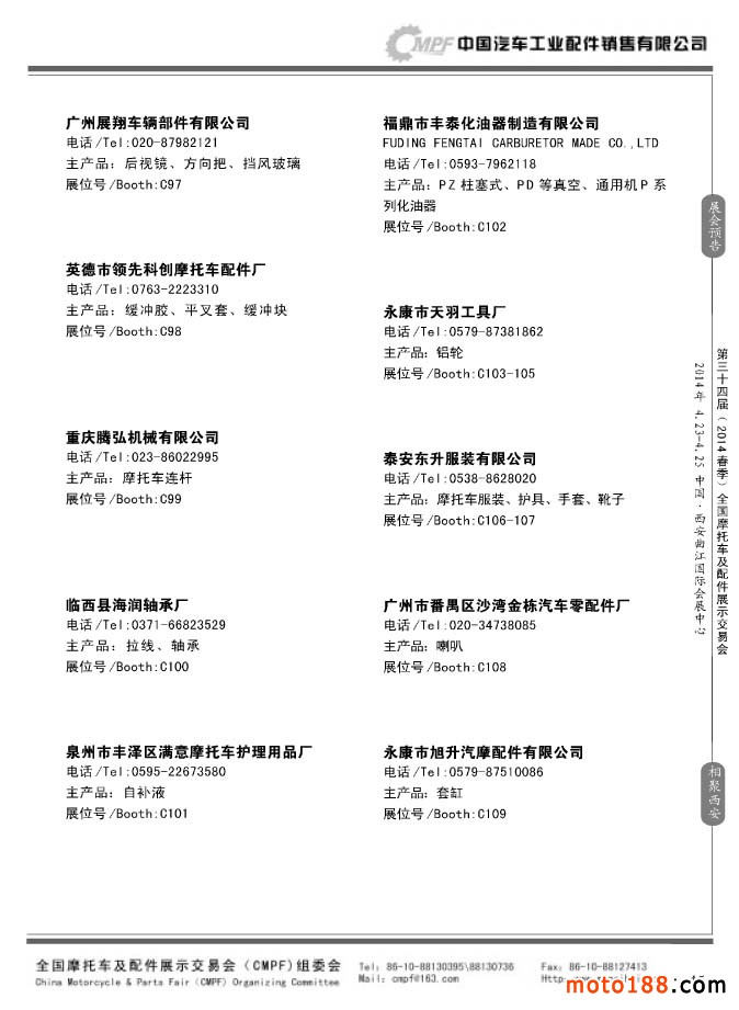 第33届秋季(南京)全国摩托车及配件展示交易会参展企业名录