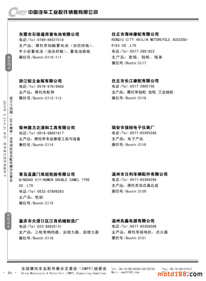第33届秋季(南京)全国摩托车及配件展示交易会参展企业名录