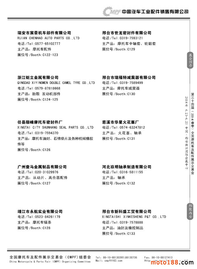 第33届秋季(南京)全国摩托车及配件展示交易会参展企业名录