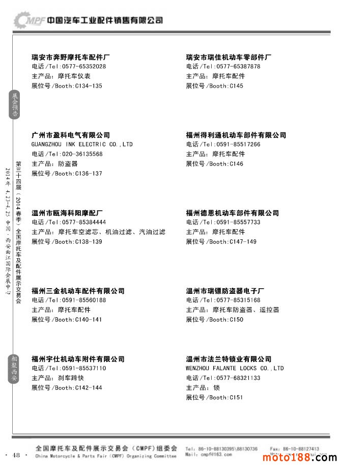 第33届秋季(南京)全国摩托车及配件展示交易会参展企业名录