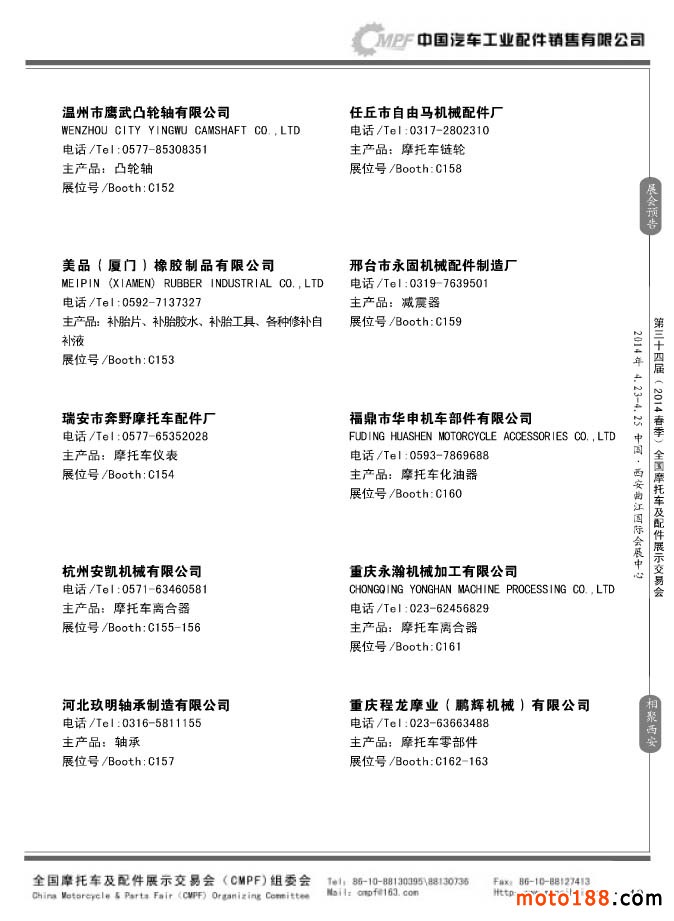 第33届秋季(南京)全国摩托车及配件展示交易会参展企业名录