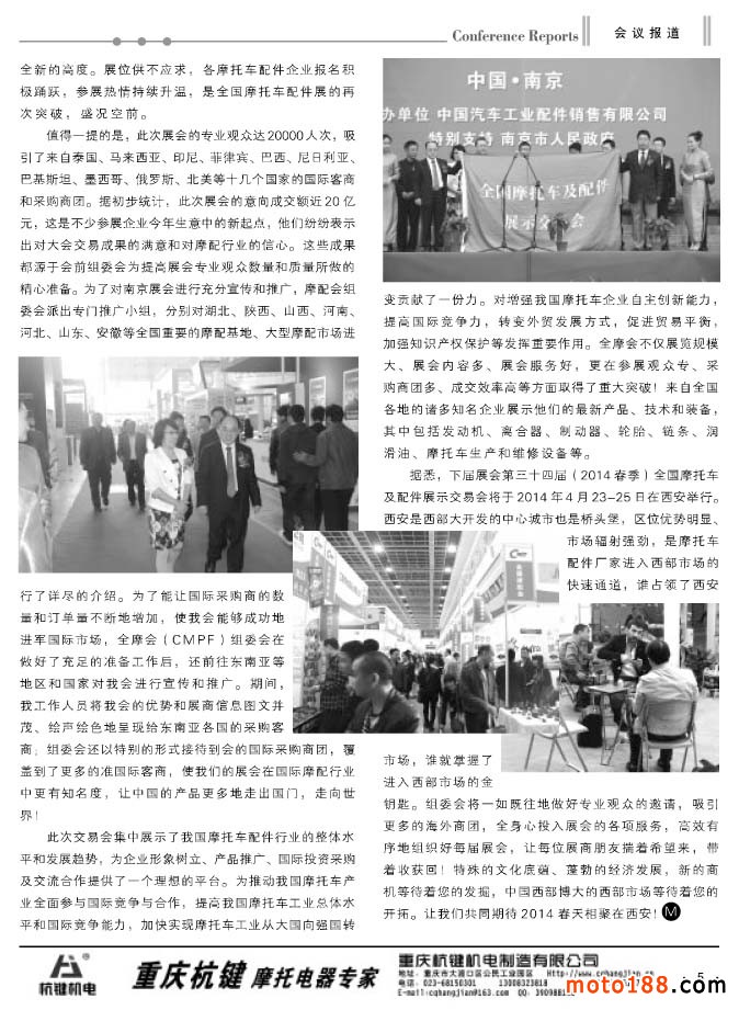 随着全摩会的闭幕,今年的配件行业经营也进入到收宫阶段,北方的天气也渐渐转冷,北方的市场也逐步趋淡。今年的市场销售整体都不太好,无论是外贸还是内销市场,我们杂志在今年也很努力,但是也能明显地感觉到市场的寒意。尽管如此,我们仍然取得了较好的成绩:我们对华东市场进行了精耕细作,走访了市场的每一个客户,搜集更新了市场的资料,并在南京秋摩会和重庆摩博会上将华东市场的第一手资料送给了企业;同时,在广州市场也更新了最新的市场资料,并在秋摩会将这本资料送给了行业同仁。