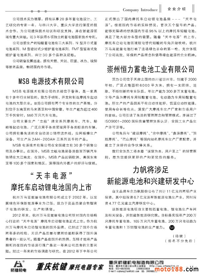 目前摩托车配件企业面临比较严峻的市场现状,但是我们了解到许多企业并不是坐以待毖,同时这个行业也在各个方面寻求突破,并且迎来了新的商机。我们杂志明年在信息发布上,也将增加和摩配行业有关的外延,如电动摩托车、三轮摩托车、助力车、小型通机等。这些零部件,都是我们配件厂能制造的,技术也是相通的。目前电动摩托、三轮摩托,小型通机市场都很不错,产销两旺,有的还是有良好的发展远景。除了通过纸媒来推广和普及外,我们的网站也将同时增加这方面的动态信息,发布即时报道,开通这几个板块的专题,为行业传输更多的信息;我们的网站也将在今冬明春大改版,进一步扩容。在严峻的形势下,我们一定要逆流而上,拓展生存和发展空间,同时我们也会将这几方面的信息向行业传递,供行业企业决策参考。当然我们更要在市场的第一线增加发行,补充完善这几方面的信息数据库。这些工作先从各省会城市开始,由大市场向小市场拓展,充分利用现行发行网络的功能,增加不同行业和市场的发行。