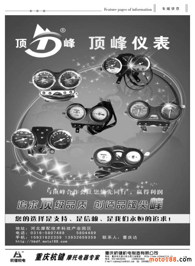 目前摩托车配件企业面临比较严峻的市场现状,但是我们了解到许多企业并不是坐以待毖,同时这个行业也在各个方面寻求突破,并且迎来了新的商机。我们杂志明年在信息发布上,也将增加和摩配行业有关的外延,如电动摩托车、三轮摩托车、助力车、小型通机等。这些零部件,都是我们配件厂能制造的,技术也是相通的。目前电动摩托、三轮摩托,小型通机市场都很不错,产销两旺,有的还是有良好的发展远景。除了通过纸媒来推广和普及外,我们的网站也将同时增加这方面的动态信息,发布即时报道,开通这几个板块的专题,为行业传输更多的信息;我们的网站也将在今冬明春大改版,进一步扩容。在严峻的形势下,我们一定要逆流而上,拓展生存和发展空间,同时我们也会将这几方面的信息向行业传递,供行业企业决策参考。当然我们更要在市场的第一线增加发行,补充完善这几方面的信息数据库。这些工作先从各省会城市开始,由大市场向小市场拓展,充分利用现行发行网络的功能,增加不同行业和市场的发行。