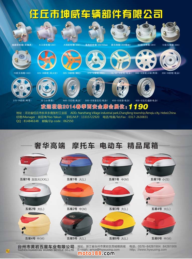 内102 任丘市坤威车辆部件有限公司/台州市黄岩五星车业有限公司