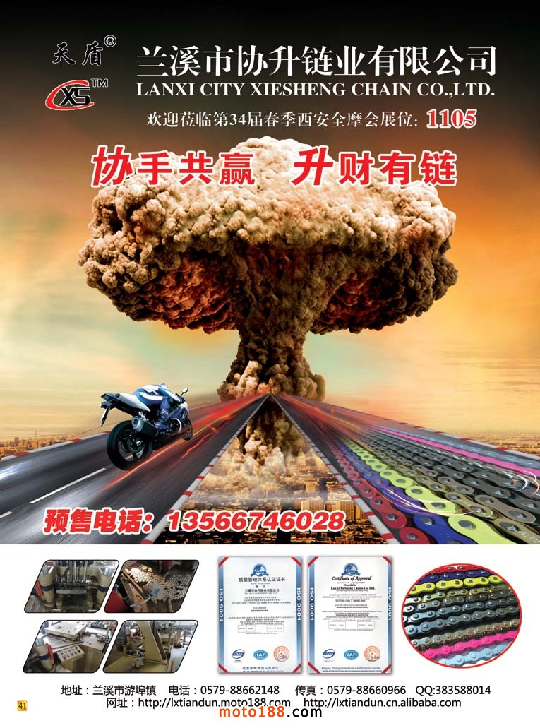 新的变革之后的《摩托车与配件》已经出了四个配件子产业的专题,通过这种形式的变革,我们对摩托车配件的微观行业也有了越来越深入的了解。每一个子行业也都有做得不错的龙头企业,他们在这个子行业里通过横向地拓展,触角伸得也较广泛。比如这一期是链条专题,其实不光摩托车用,电动车、汽车、工业机械....只要需要传动的都有链条的身影。因而许多厂的产品也涉及了多行业,但是我们仅选择与我们产业有关的产品做一般的技术报道;前沿行业作泛泛报道;市场运用方面则是尽可能以广角报道。以前一些企业也在我们杂志上做过宣传,因为我们认识水平浅,不容易突出重点品牌企业,因而在宣传服务上也流于常规。但是通过这期专题后,我们了解到,像东华、恒久、顺峰、双狮、征和等都是这个行业的龙头企业,而且这些龙头企业后劲十足。他们不光在扩大产能生产;更是投入了相当的精力在搞科研;抑或引进国外的先进技术,不光在做大更是在做强,假以时日,他们也会在国际市场上占有一席之地。我们对这些企业充满敬意,他们是民族工业的脊梁。虽然纳税没有房地产企业多,也没有金融和地产业的风光,但他们没有固步自封,也不满足现状,带着创新和发展的精神赶德超日超美,缩短与国际水平的差距,也正是因为有许多像这样的实体产业,中国制造才能真正的做强。那些只制造虚的庞大GDP的、靠吸吮实体产业汁水而滋润的和靠垄断而光鲜的行业,在他们面前是多么的不堪。
