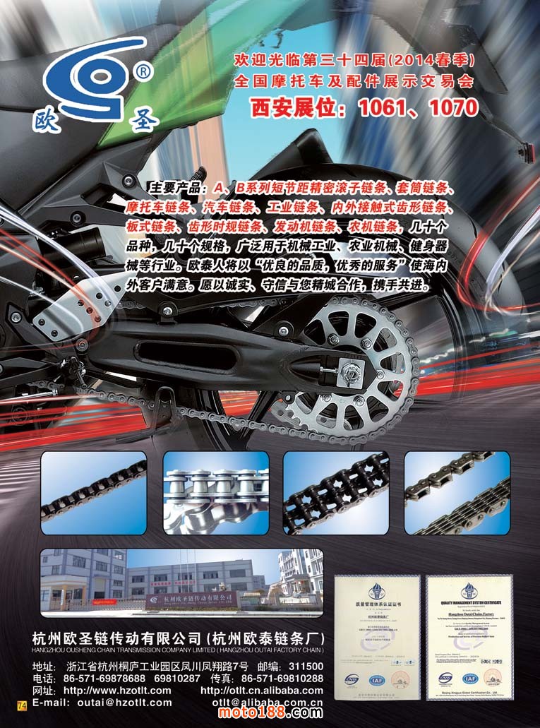 新的变革之后的《摩托车与配件》已经出了四个配件子产业的专题,通过这种形式的变革,我们对摩托车配件的微观行业也有了越来越深入的了解。每一个子行业也都有做得不错的龙头企业,他们在这个子行业里通过横向地拓展,触角伸得也较广泛。比如这一期是链条专题,其实不光摩托车用,电动车、汽车、工业机械....只要需要传动的都有链条的身影。因而许多厂的产品也涉及了多行业,但是我们仅选择与我们产业有关的产品做一般的技术报道;前沿行业作泛泛报道;市场运用方面则是尽可能以广角报道。以前一些企业也在我们杂志上做过宣传,因为我们认识水平浅,不容易突出重点品牌企业,因而在宣传服务上也流于常规。但是通过这期专题后,我们了解到,像东华、恒久、顺峰、双狮、征和等都是这个行业的龙头企业,而且这些龙头企业后劲十足。他们不光在扩大产能生产;更是投入了相当的精力在搞科研;抑或引进国外的先进技术,不光在做大更是在做强,假以时日,他们也会在国际市场上占有一席之地。我们对这些企业充满敬意,他们是民族工业的脊梁。虽然纳税没有房地产企业多,也没有金融和地产业的风光,但他们没有固步自封,也不满足现状,带着创新和发展的精神赶德超日超美,缩短与国际水平的差距,也正是因为有许多像这样的实体产业,中国制造才能真正的做强。那些只制造虚的庞大GDP的、靠吸吮实体产业汁水而滋润的和靠垄断而光鲜的行业,在他们面前是多么的不堪。