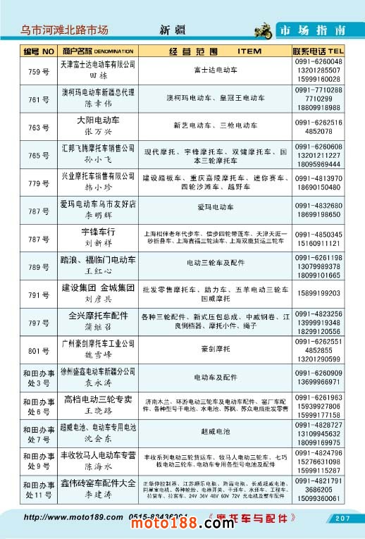 记录出来;乌鲁木齐不仅在克东路有市场,另外新增了一个电动车和摩托车混合经营的河滩