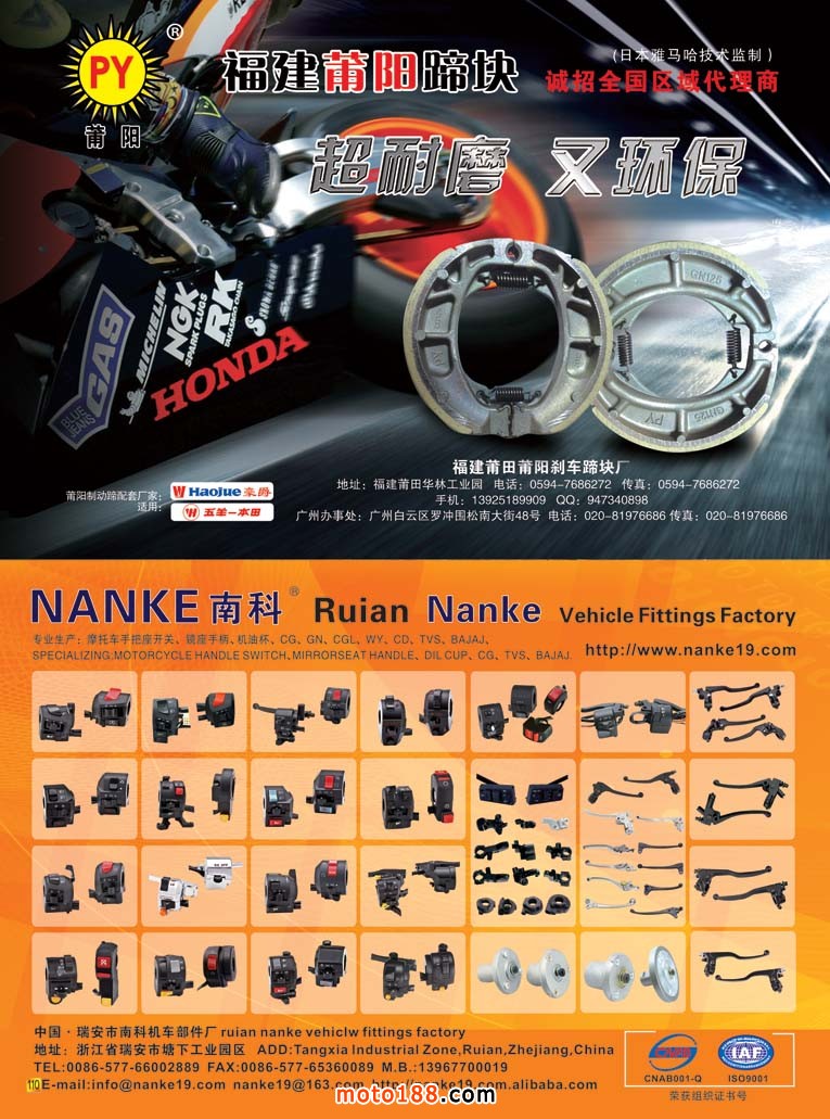 内110 福建莆田莆阳刹车蹄块厂/瑞安市南科机车部件厂