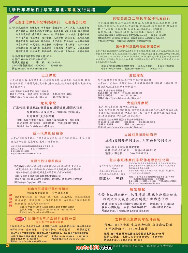 《摩托车与配件》经过十多年发展和企业一起成熟,但并没有变老,永远保持与时俱进的青春活力,部分市场在变,我们的意志和恒心不变。我们根据这两个大区的变化,也给杂志进行了一次新的定位,配件行业是我们的主战场,我们始终在配件行业耕耘。尽管电动车的配件没有摩托车的多和广,但我们已经采取措施在许多市场里将电动车配件经营企业也纳入到我们的送书计划里。在以后出的《指南》类书籍里,在也会将市场里从事电动车配件批发的选录进来。“问渠那得清如许?唯有源头活水来”。这是一个恒久的市场,却又是时时在变化的市场,尤如铁打的营盘流水的兵,市场是铁打,里面经营的企业就是流水,只有流动的水才是活水。