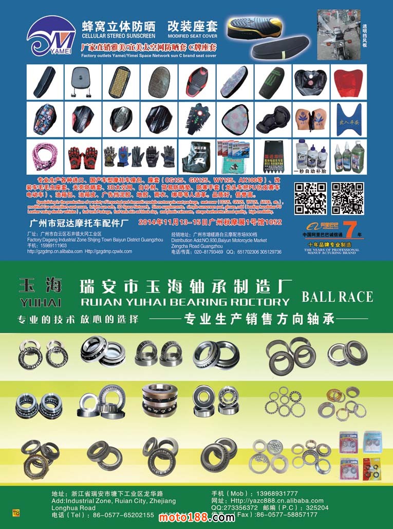 内118 广州市冠达摩托车配件厂/瑞安市玉海轴承制造厂