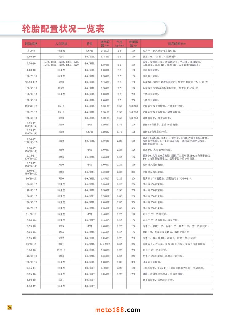 内52 轮胎配置状况一览表