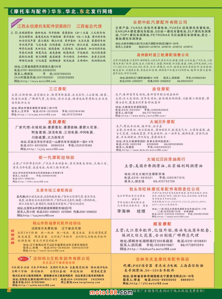 炎热的夏季终将过去,收获的秋天在等待我们,从下一期杂志开始,我们就要为广州全摩会做准备工作了,在这个会上,我们会向全体参会人员奉献两本数据库类书籍,一本是生产厂家的《摩托车配件生产企业大全》,在这一个升级版中,我们新增加十几个大的摩托车整车生产厂家资料,同时增加二十家电动车生产厂家及十几家三轮摩托车和三轮电动车厂家,努力根据市场需要丰富书的内容。还有一本就是第二次升级的《华南市场指南》收集广东和海南两省的经销商资料汇总,其中,广东省的广州市的市场用中英文出版,目前各项工作正紧张有序的进行,欢迎大家在全摩会期间来广州保利展馆分享我们的劳动果实。春种一粒粟,秋收万颗籽。