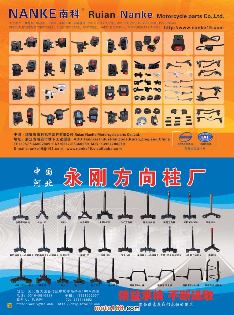 内128 瑞安市南科机车部件有限公司 内128 永刚方向柱厂