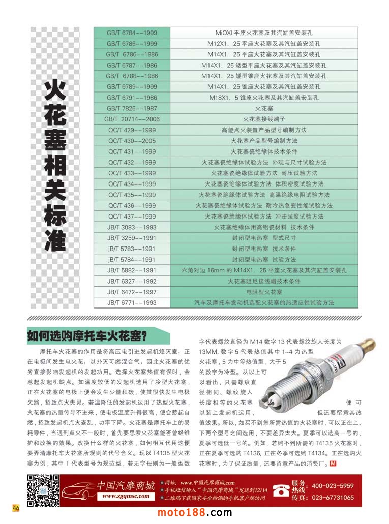内46 火花塞相关标准/如何选购摩托车火花塞