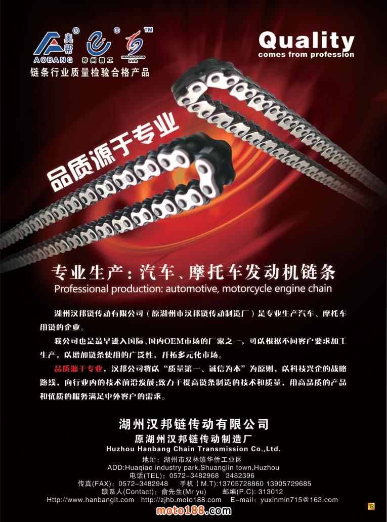 行业大型展会——第三十四届秋季广州全摩会会展期间,由于杂志广告版面较多,原定出版的配件套缸专题和三轮车行业的相关信息专题移至下期出刊。