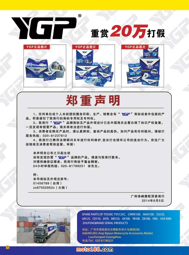 行业大型展会——第三十四届秋季广州全摩会会展期间,由于杂志广告版面较多,原定出版的配件套缸专题和三轮车行业的相关信息专题移至下期出刊。