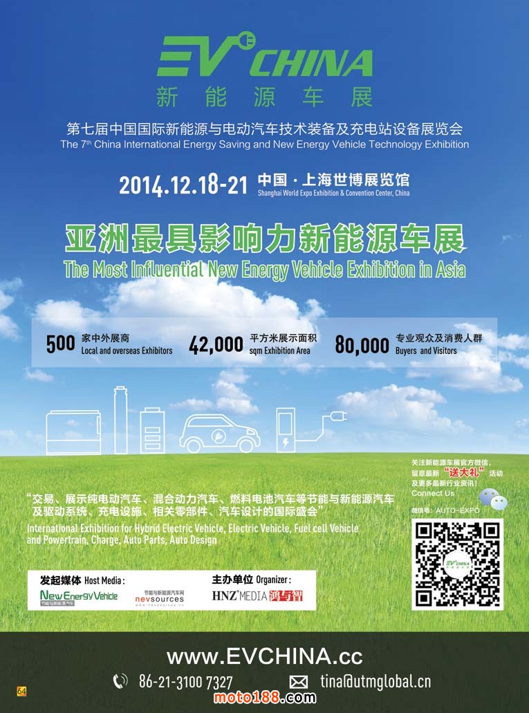虽然行业形势不好,2014年于我们来说依然是丰收之年。今年我们还播种了-----《新能源车》,通过几期的发行,取得了良好的社会效益,目前已经是这个行业做得最好的媒体,明年即可进入收获季节,需要了解新能源汽车行业的资讯,请浏览www.moto189.com