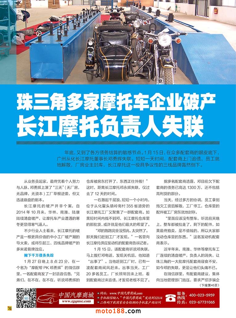 内38 珠三角多家摩托车企业破产长江摩托负责人失联