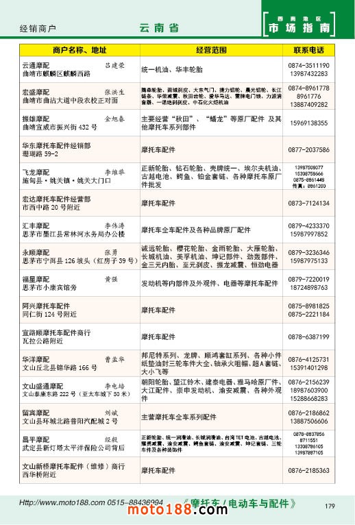 内179 云南省摩托车配件经销商户