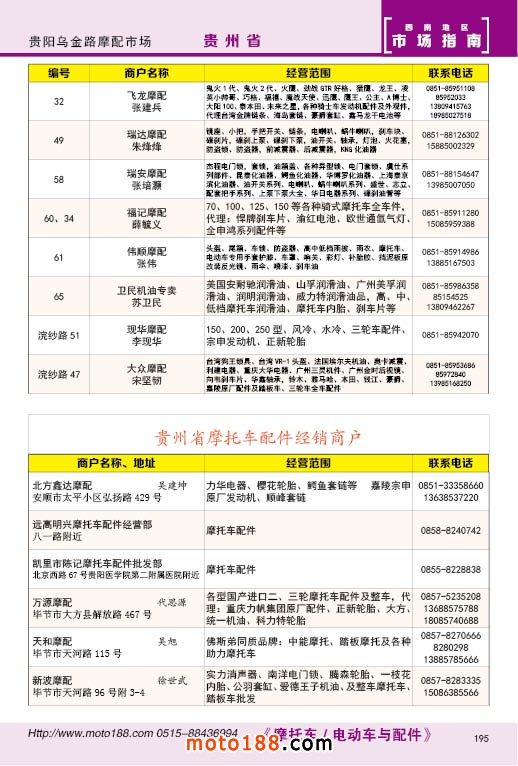 内195 贵州省摩托车配件经销商户