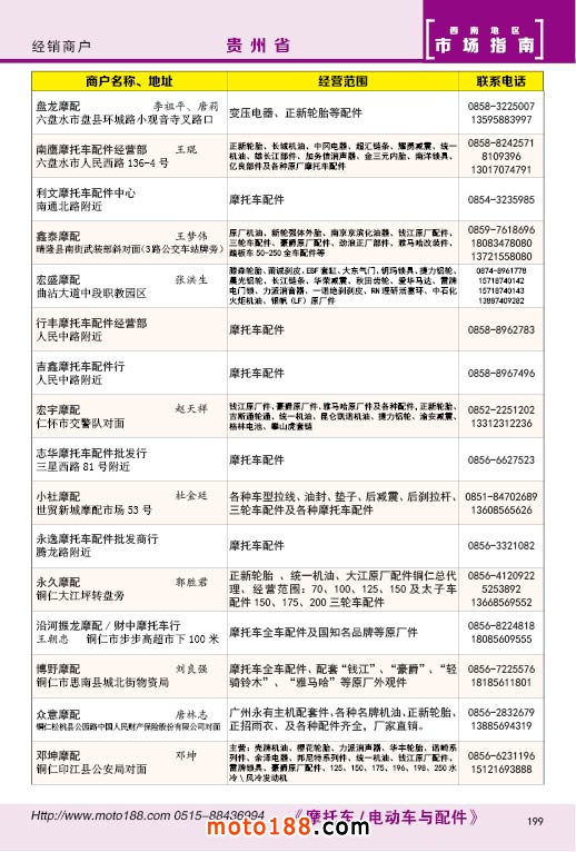 内199 贵州省摩托车配件经销商户