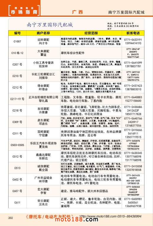 内202 南宁万里国际汽配城经销商名录