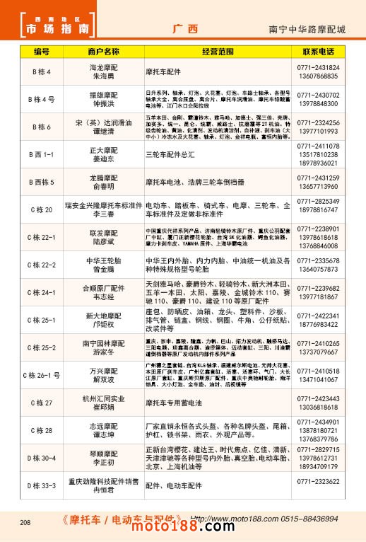 内208 南宁中华路摩配市场经销商名录