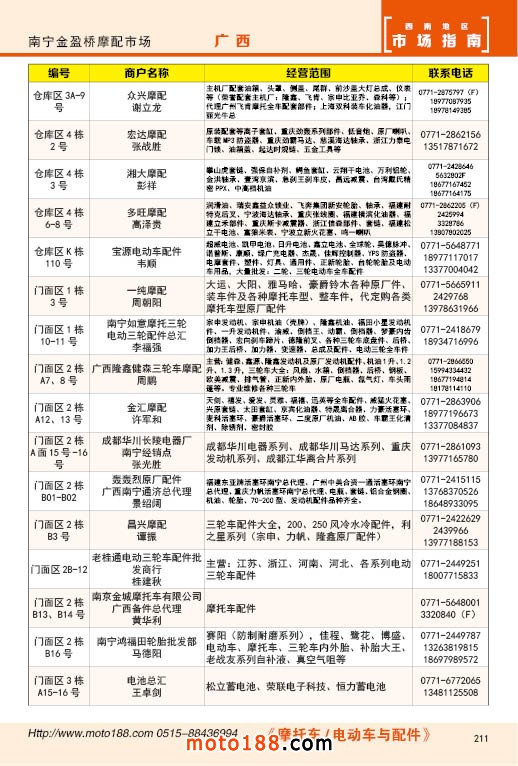 内211 南宁金盈桥摩配市场经销商名录