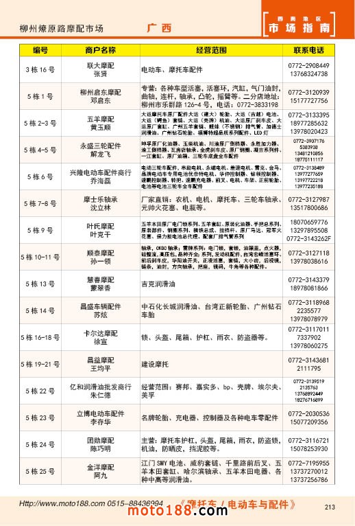 内213 柳州市燎原路摩配市场经销商名录
