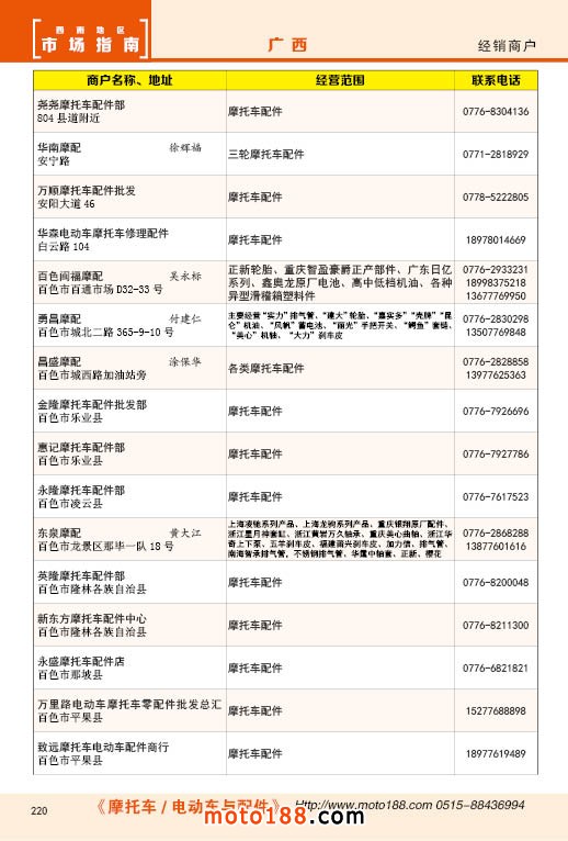 内220 广西摩托车配件经销商户