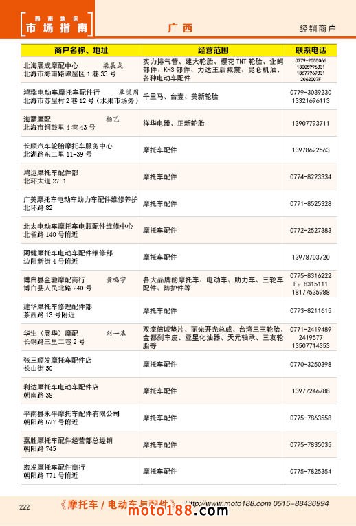 内222 广西摩托车配件经销商户