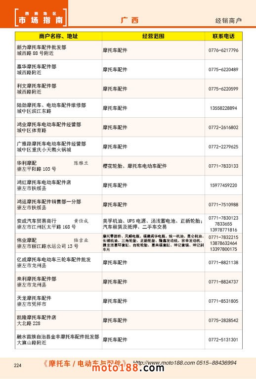 内224 广西摩托车配件经销商户