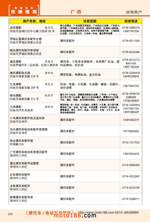 内232 广西摩托车配件经销商户