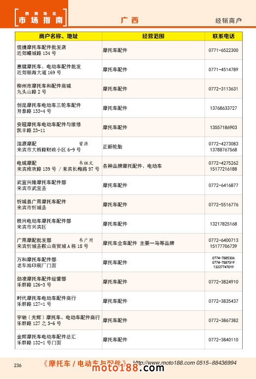 内236 广西摩托车配件经销商户