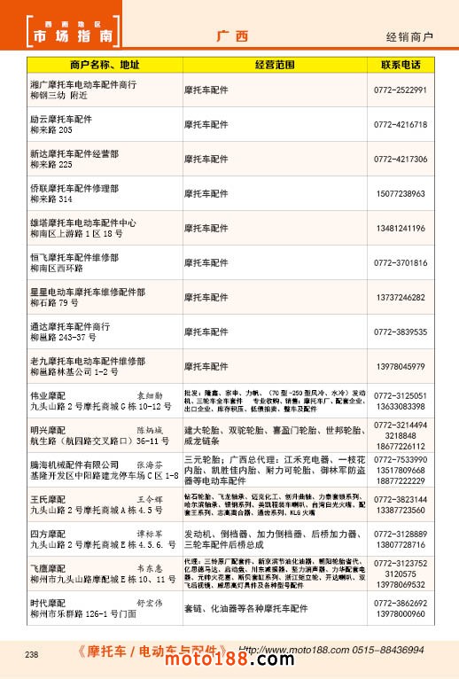 内238 广西摩托车配件经销商户