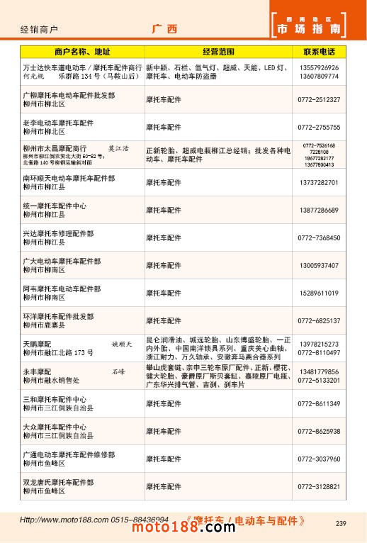 内239 广西摩托车配件经销商户