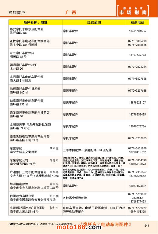 内241 广西摩托车配件经销商户